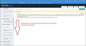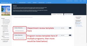 Once you click on department review, all annual submissions, including five-year reviews, annual reports, and assessment reports, are entered into the same place (or workspace). Below is an example of a departmental template, which starts with the five-year review.